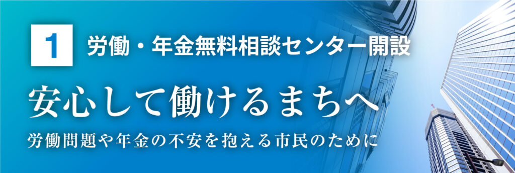 「労働・年金相談窓口の開設」(ワンストップサービスで労働・年金問題に対応)の実現に努めます。