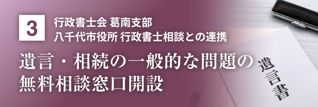 加えて、市として「遺言作成支援事業」を立上げて、高齢者・独居世帯等が公正証書遺言を円滑に作成できる支援制度の創設に努めたいと考えています。